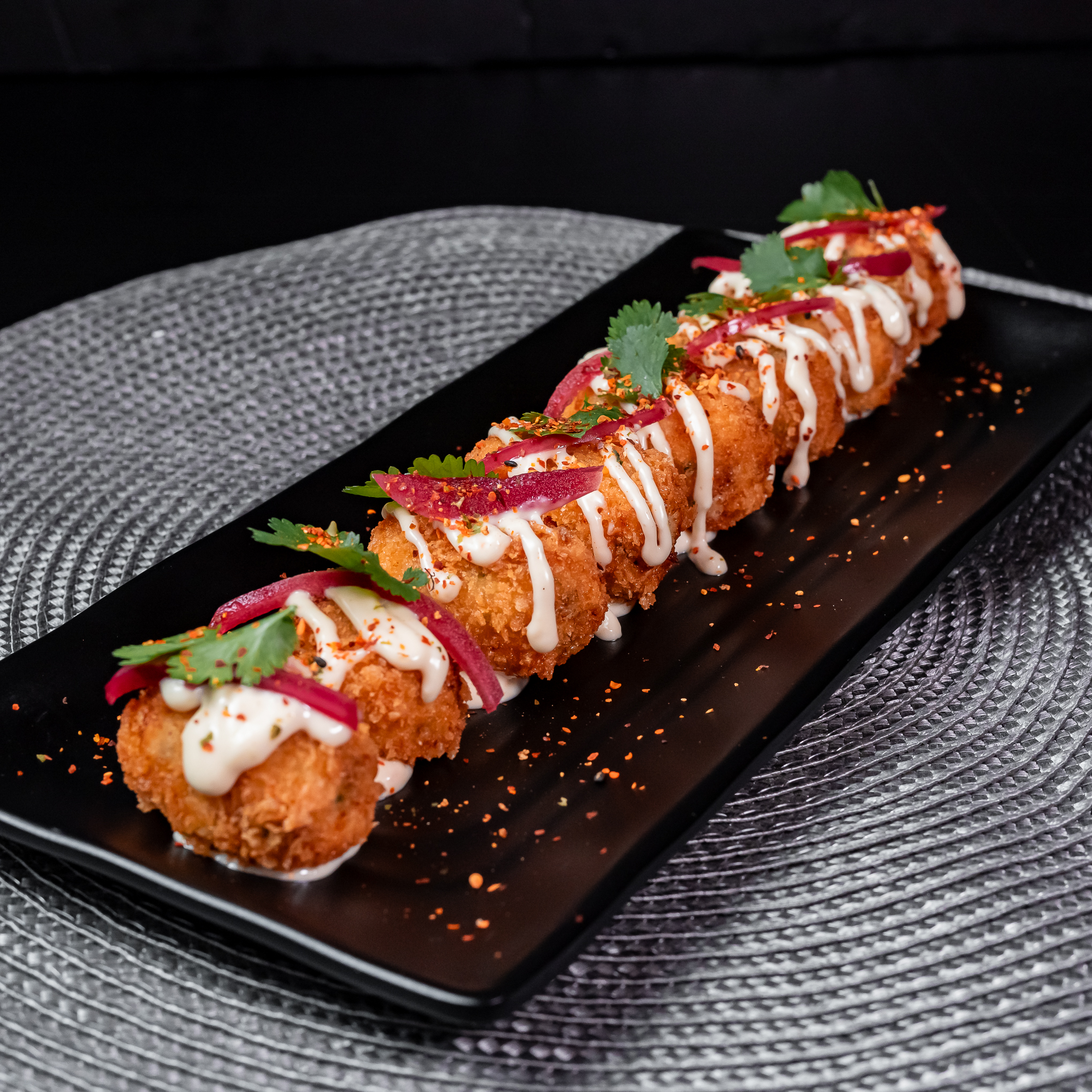 Croquetas Acevichadas, un entrante que combinan pescado fresco del día con el toque vibrante de limón, ají limo y culantro, todo coronado con una crema acevichada,